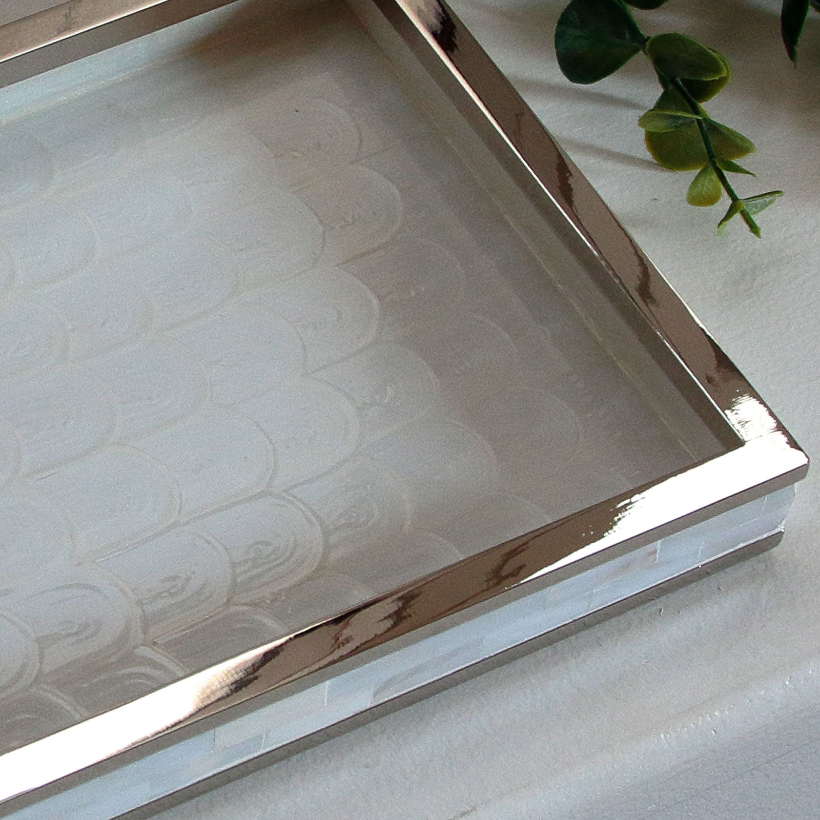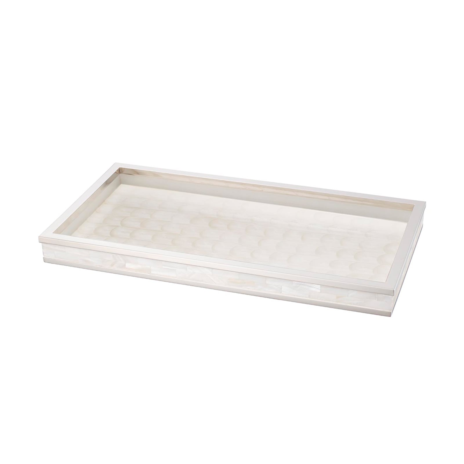 マザーオブパールをひとつひとつ貼り合わせて作った職人によるハンドメイドのトレー(小物収納)。美しく、人のぬくもりを感じる仕上がり。 |