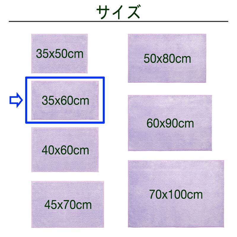 ●7サイズx 5カラーの豊富なバリエーションで 足拭きマット、玄関マット、インテリアマットなど、様々な場所やお部屋のインテリアに合わせてお選びいただけます。
