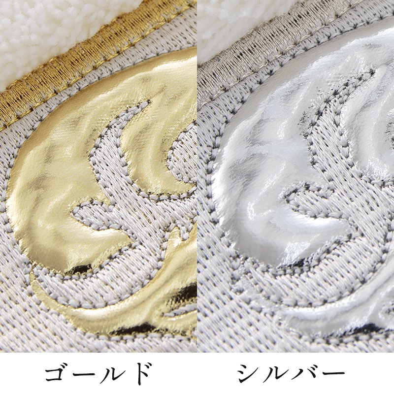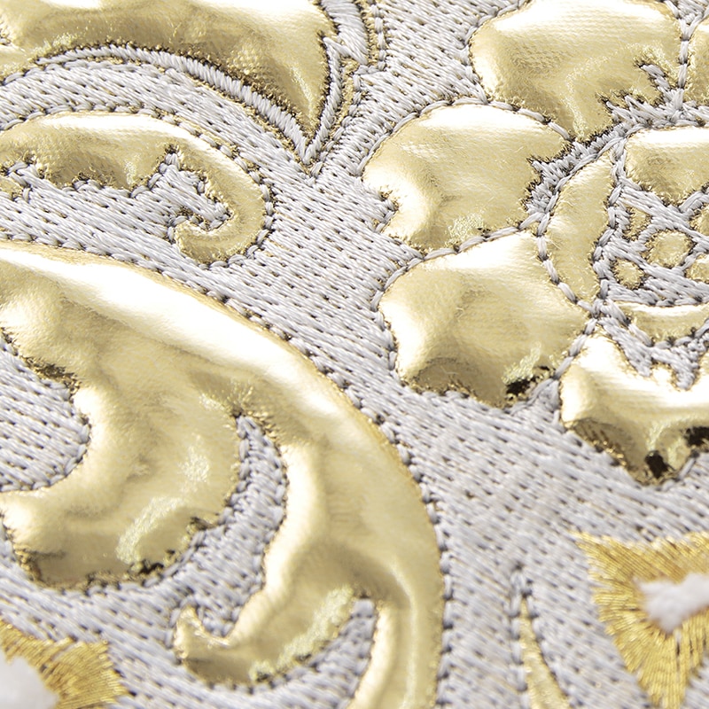 金属のような光沢感をメタリックの生地で表現し ロココ風のアンティークなオーナメントモチーフを立体的なアップリケでデザインした豪華なファブリックシリーズ。 |