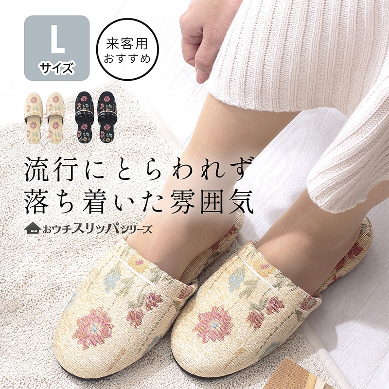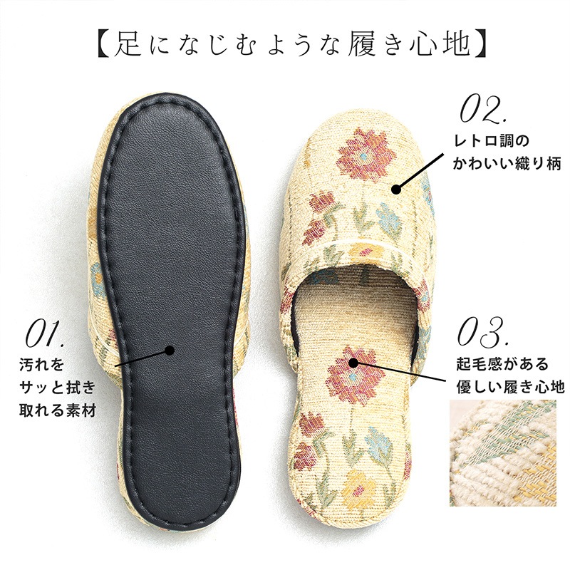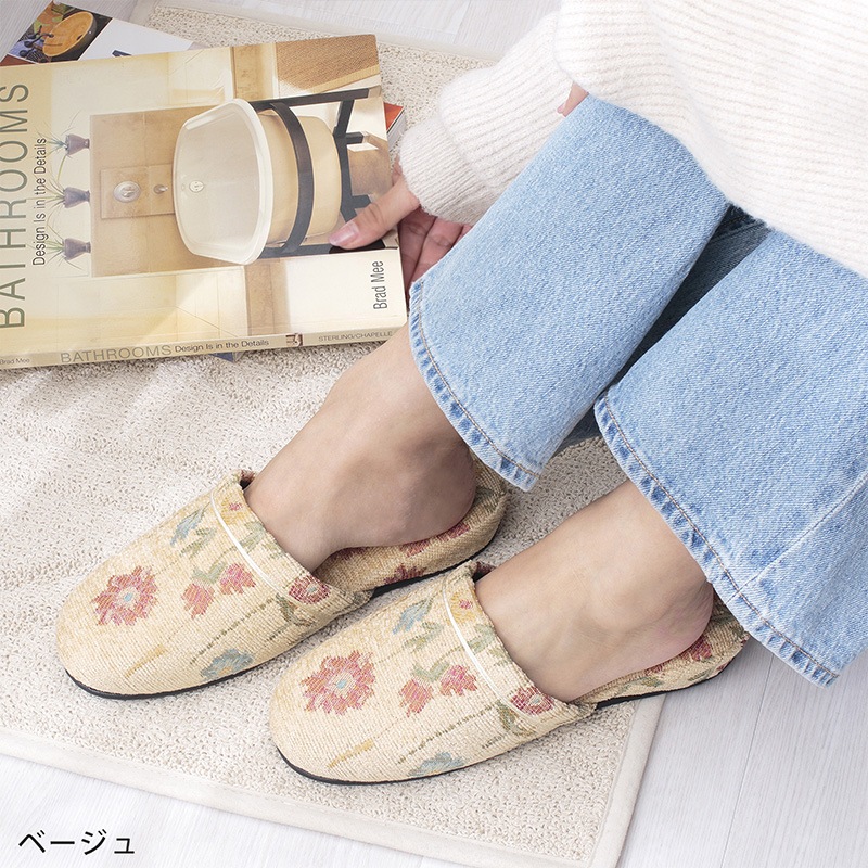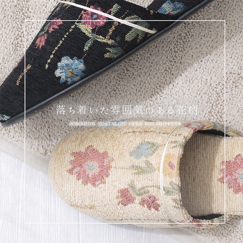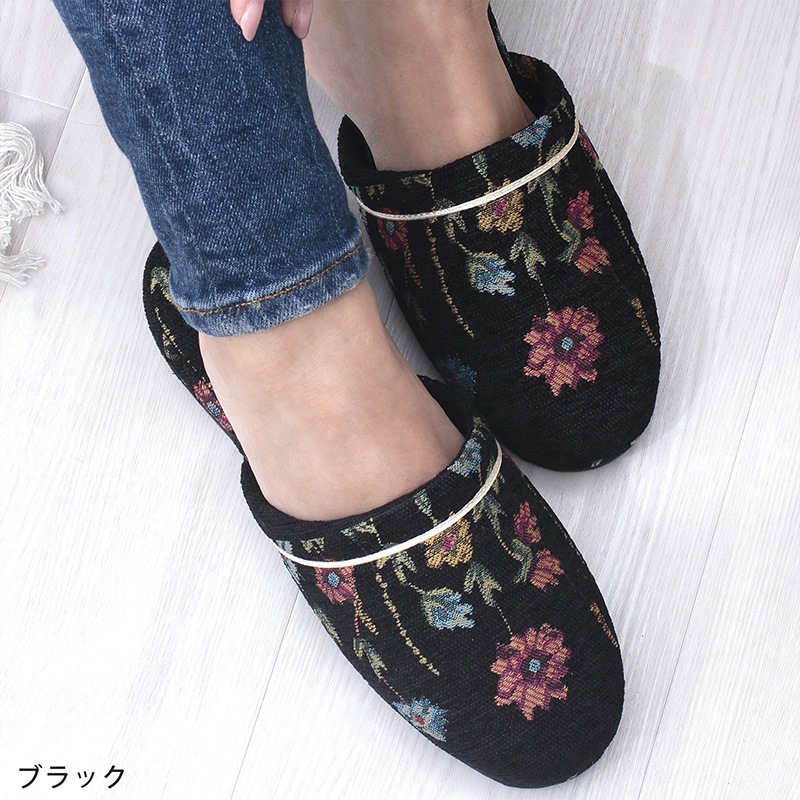 おウチスリッパ 前開きジャガードローズ DF22A07