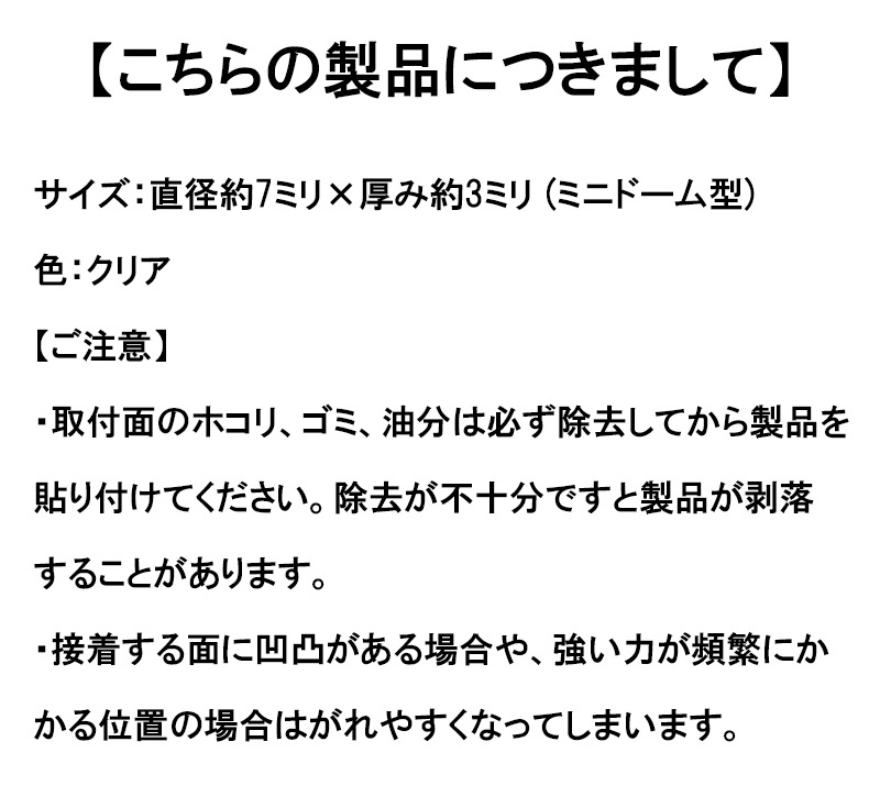 ドーム型で直径約7mm。小さめタイプなので洗面用品などにちょうどいいサイズです。