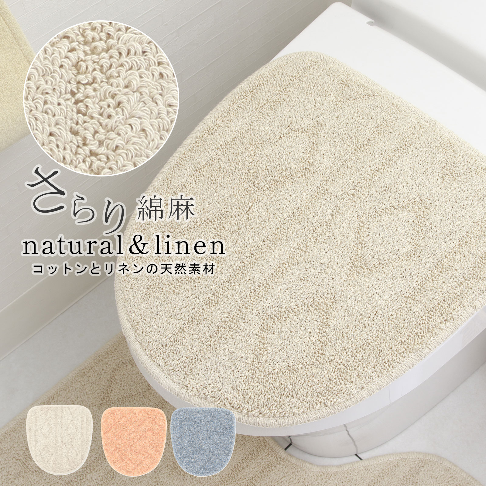 ナチュラルリネン[リネンアート] バスマットL 60×90cm