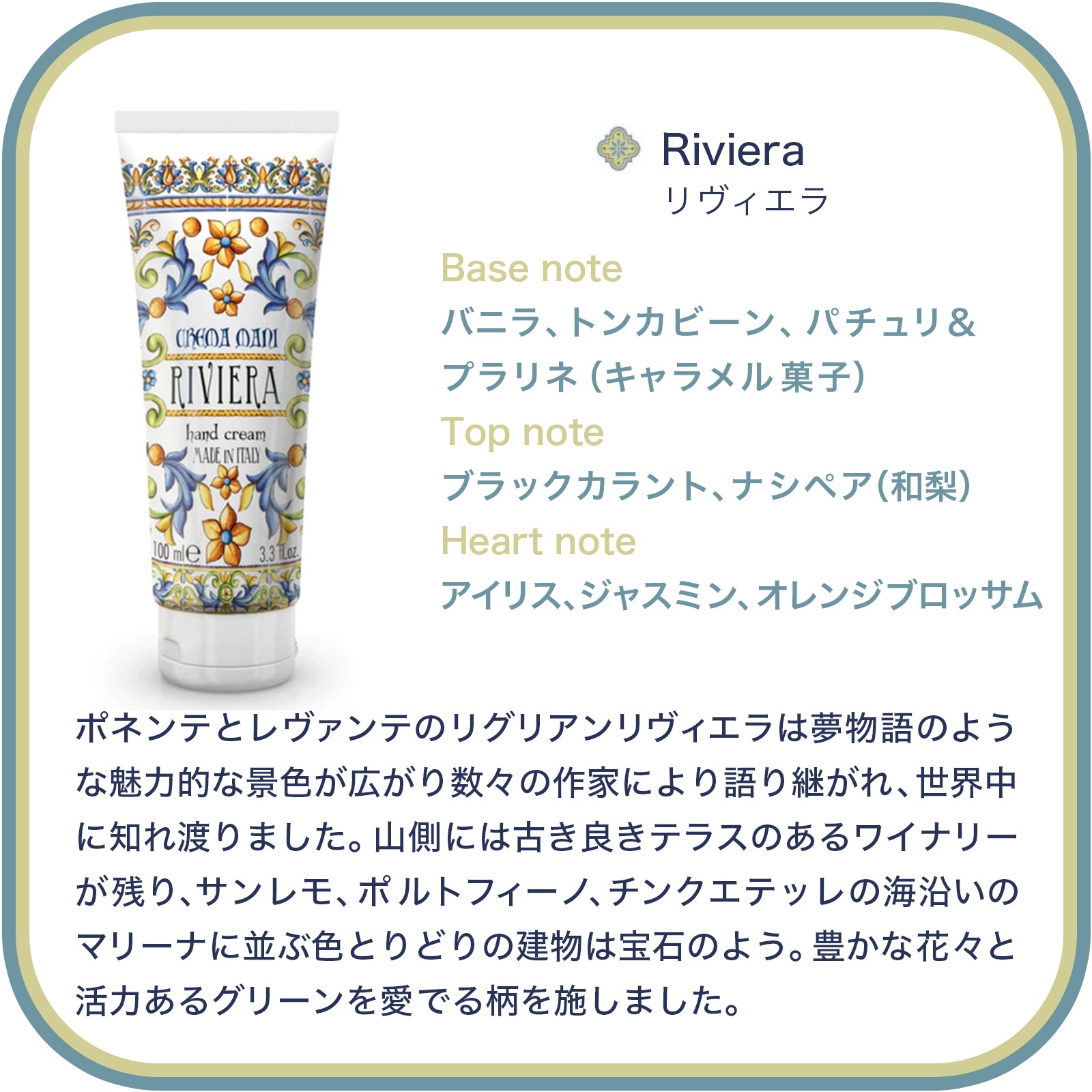 Rudy ルディ Le Maioliche ル・マヨルカ ハンドクリーム 100mL サレント