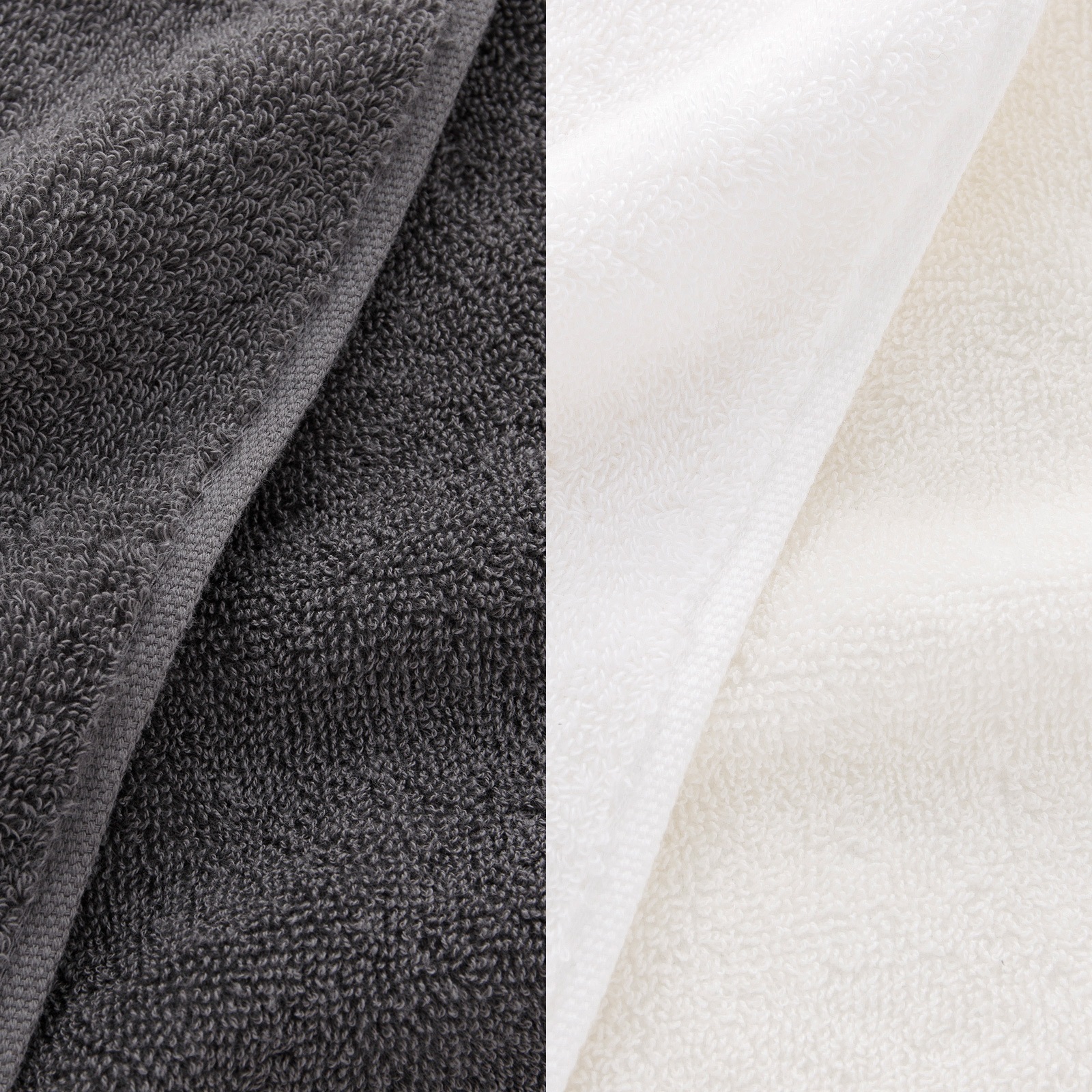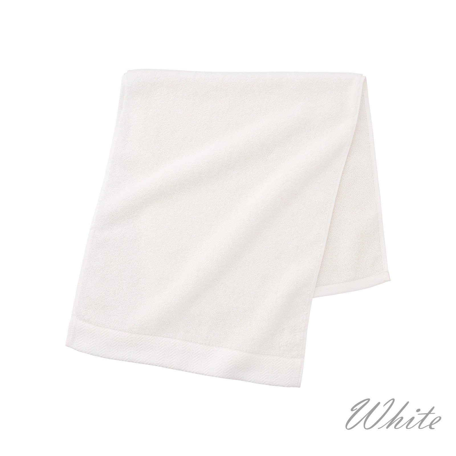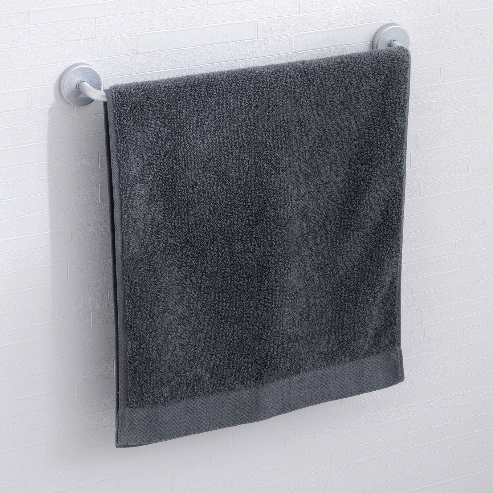 ヘム(ふち)の片方には織りで表現したヘリンボーンをあしらい、モダンでシックな印象に仕上げました。