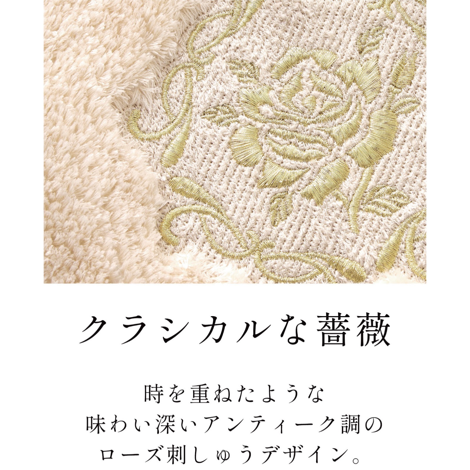 上品な印象の刺しゅうデザインと落ち着いた印象を与えるグレイッシュ・カラー。