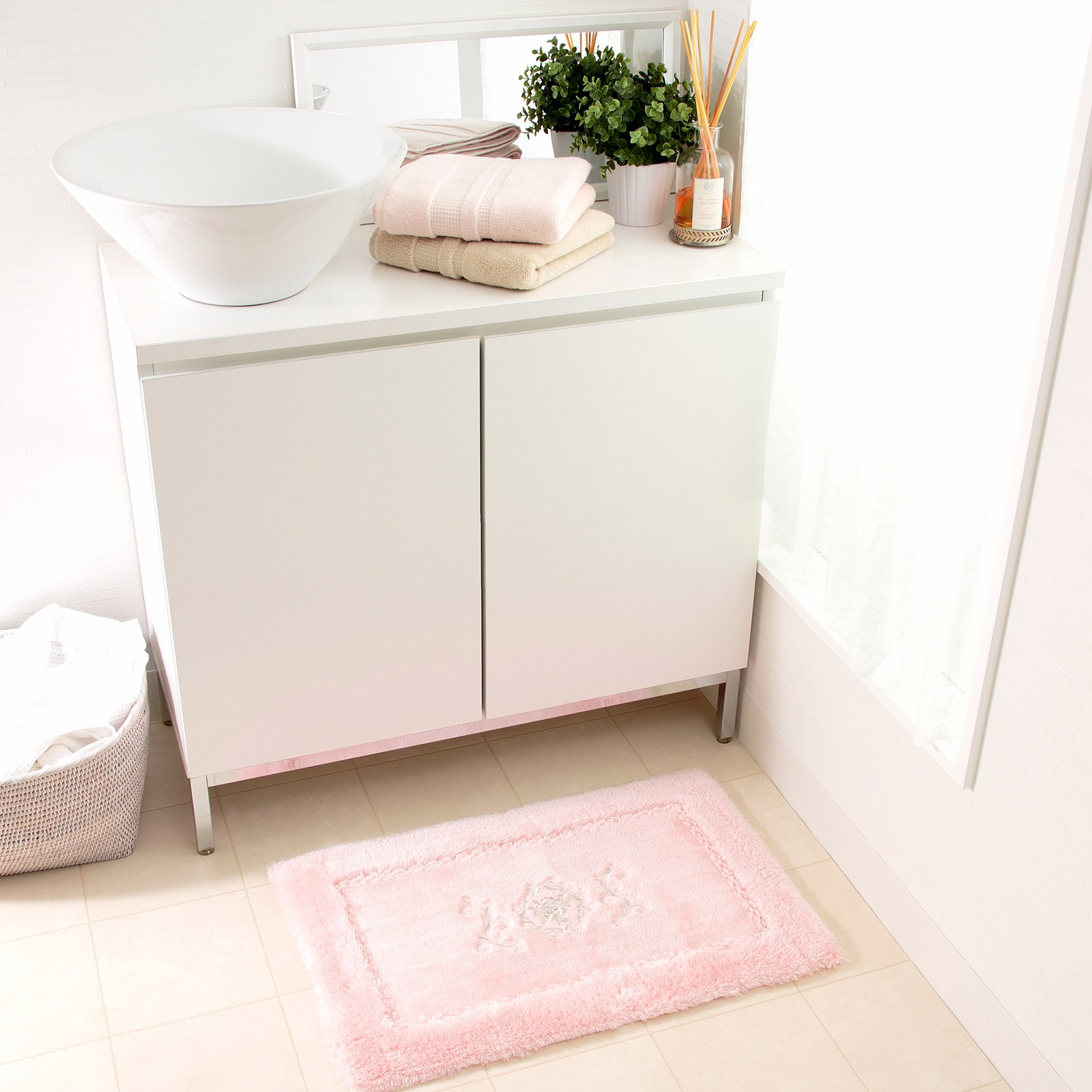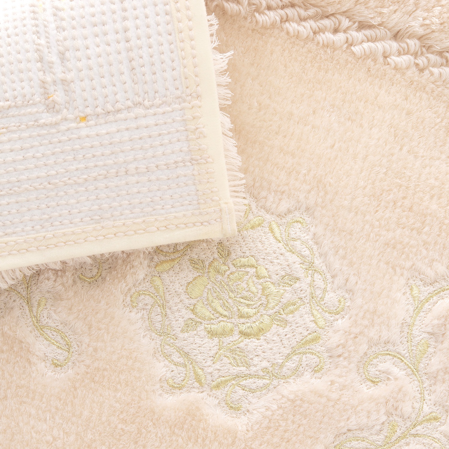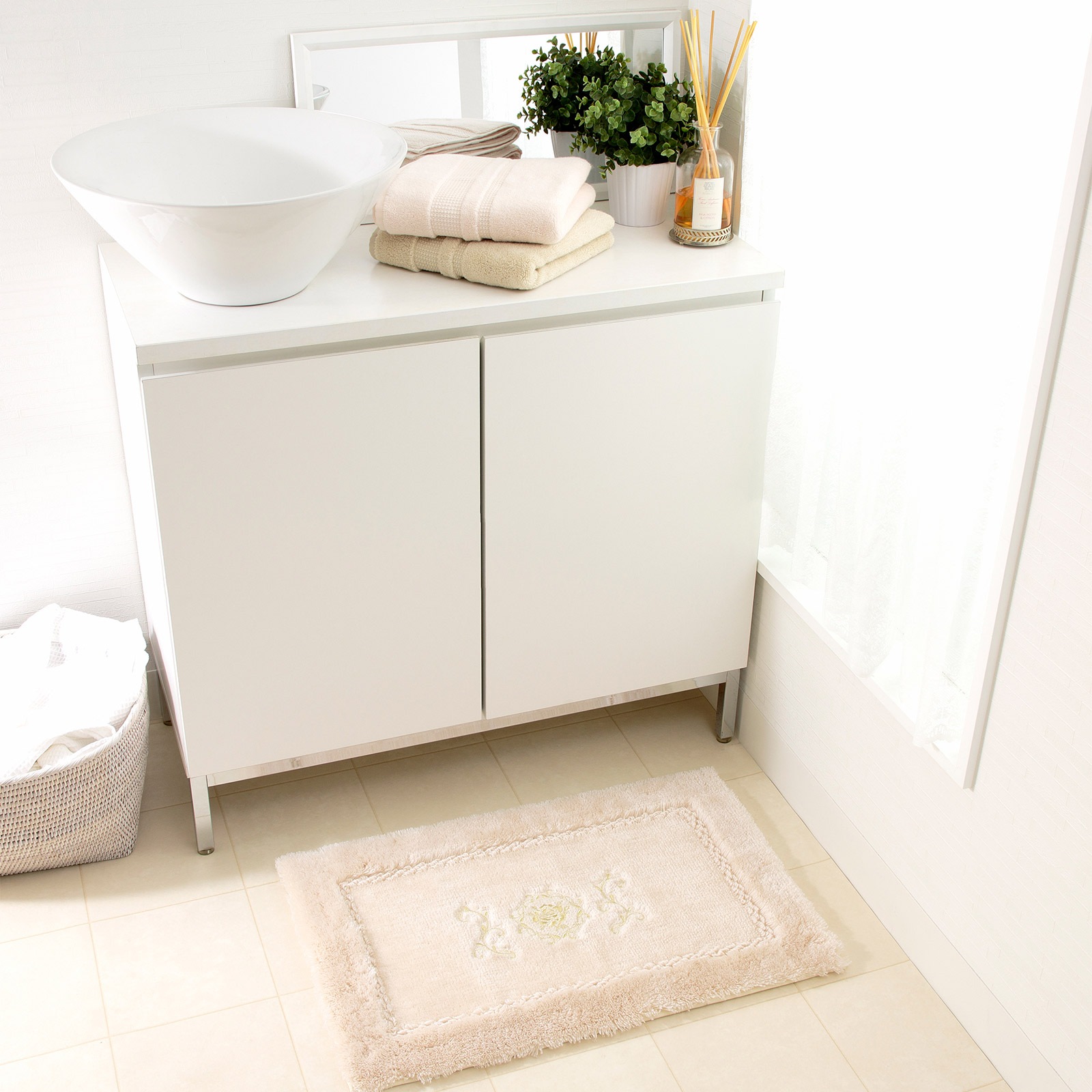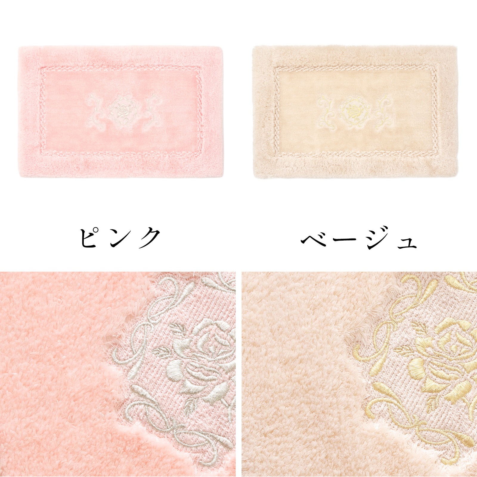 グレイッシュ・カラーの穏やかな色合いに、生地色に合わせた刺しゅうが凛とした佇まいを醸す「B.d.O」のトイレタリーシリーズ『クレメント』のトイレマット。