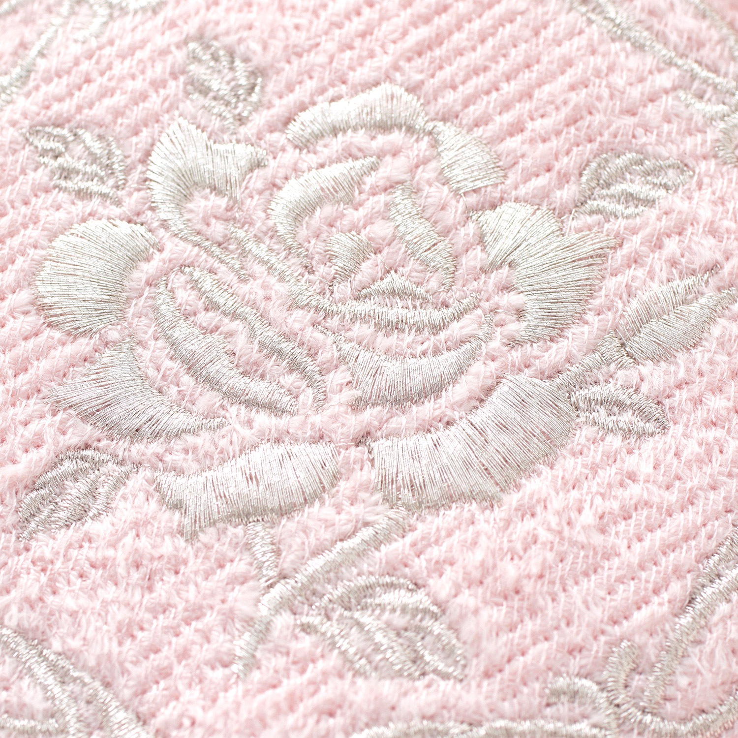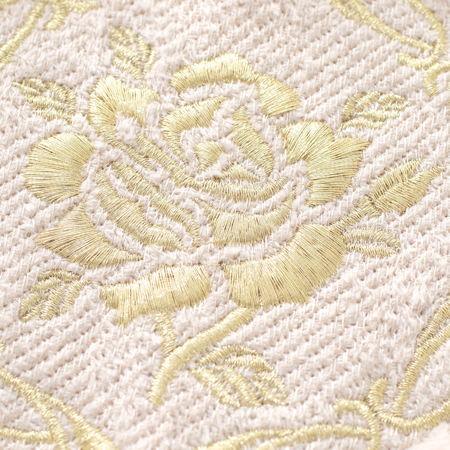 上品な印象のオーナメント柄の刺繍と落ち着いた印象を与える淡いグレイッシュカラー。