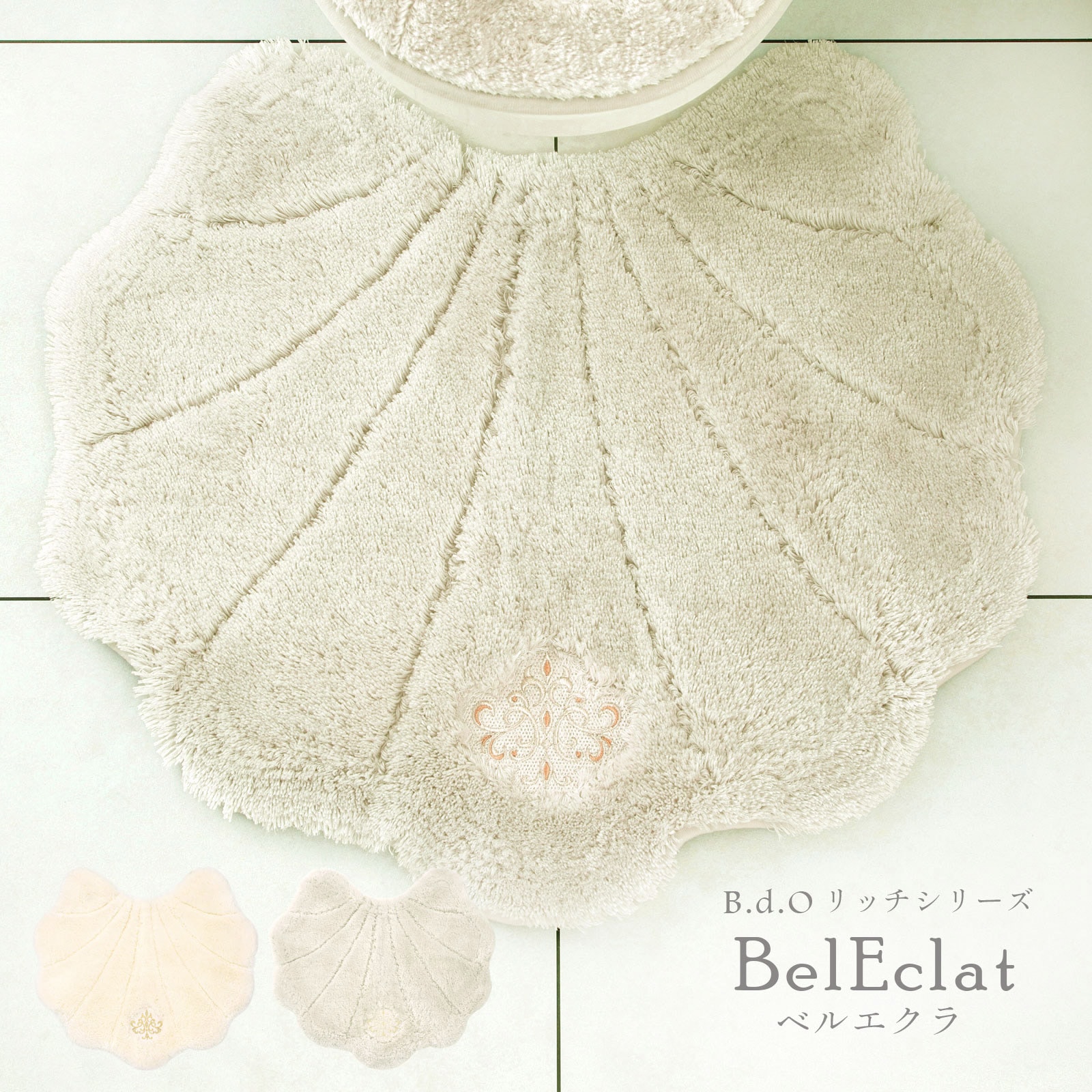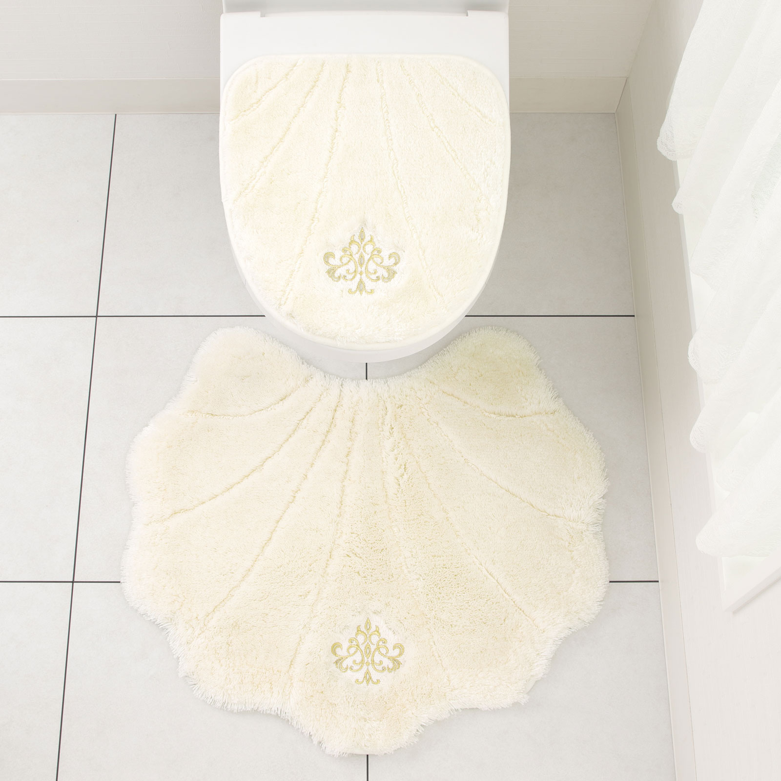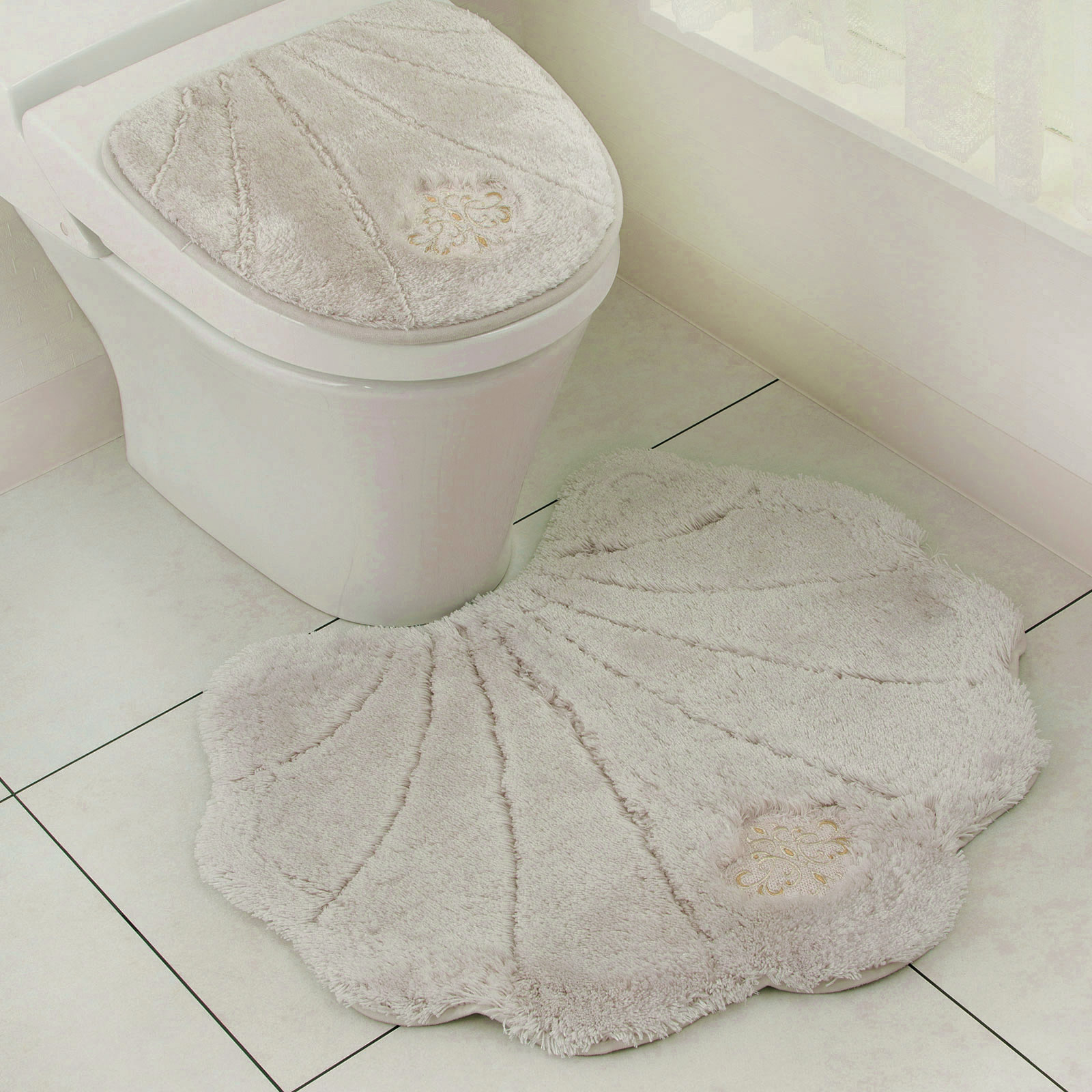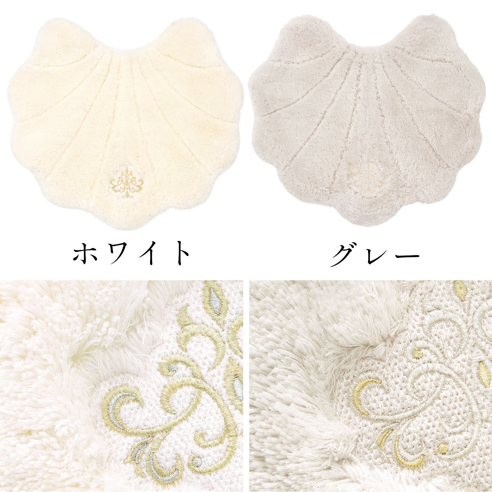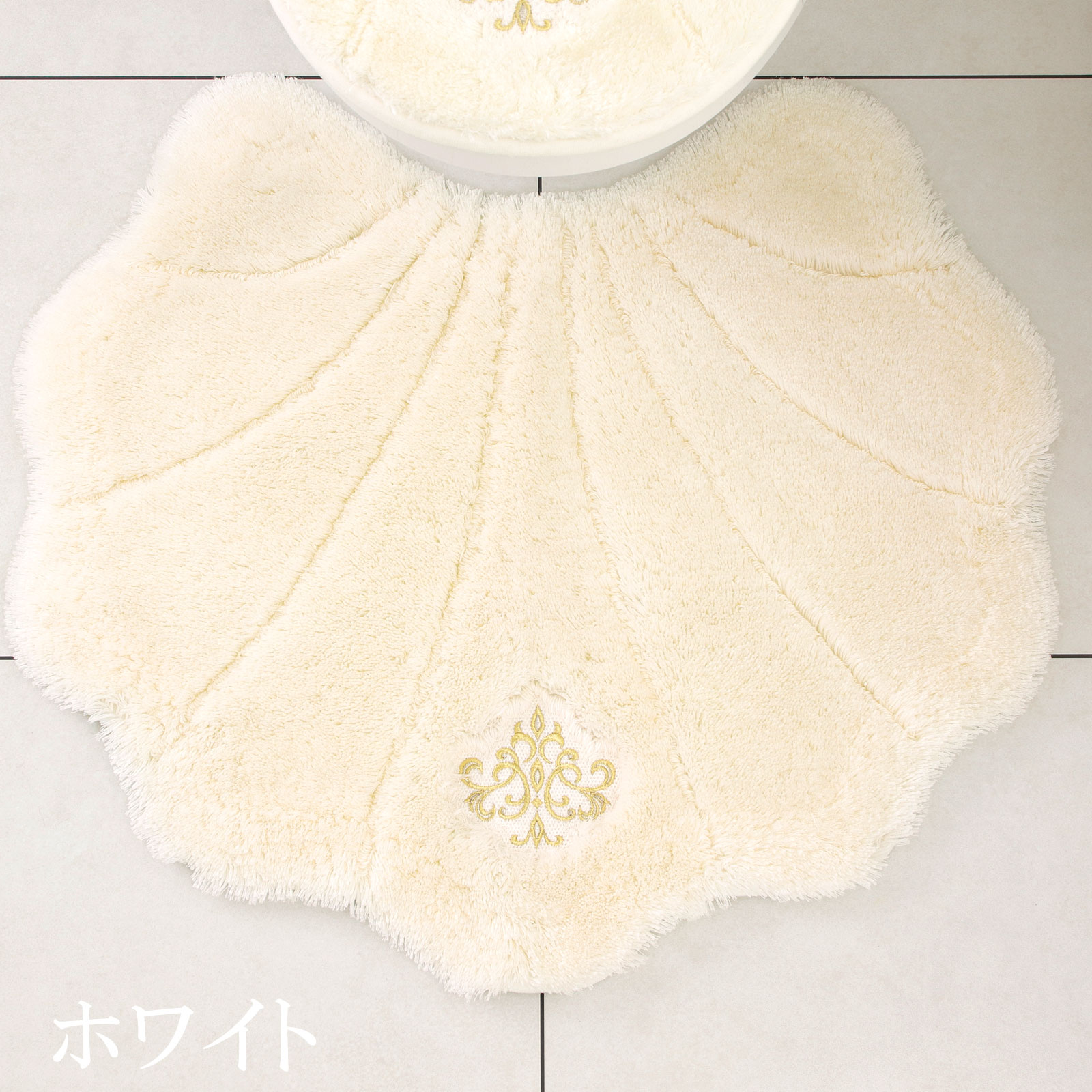 シャンデリアモチーフの繊細で贅沢な刺しゅうデザインの円形トイレマット。