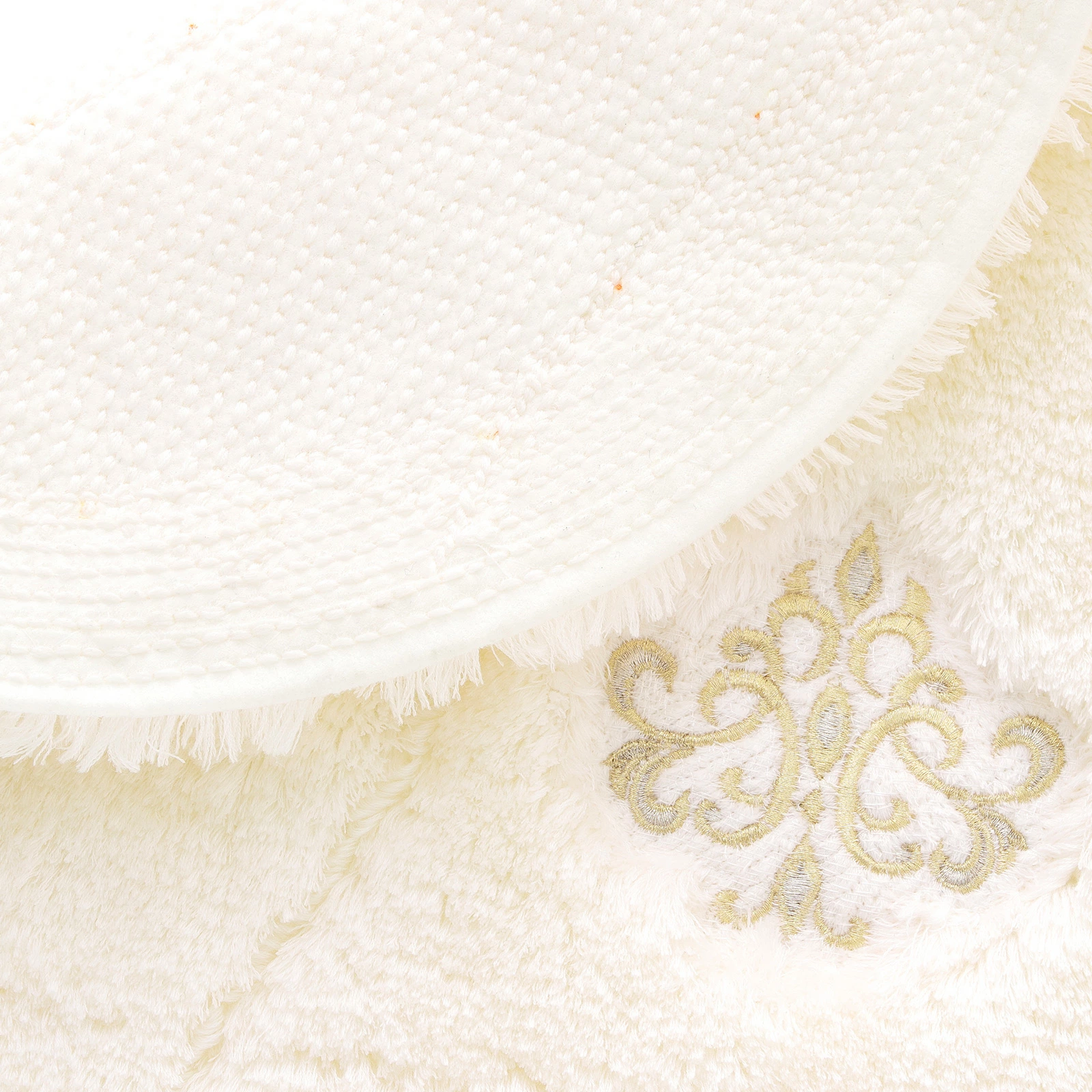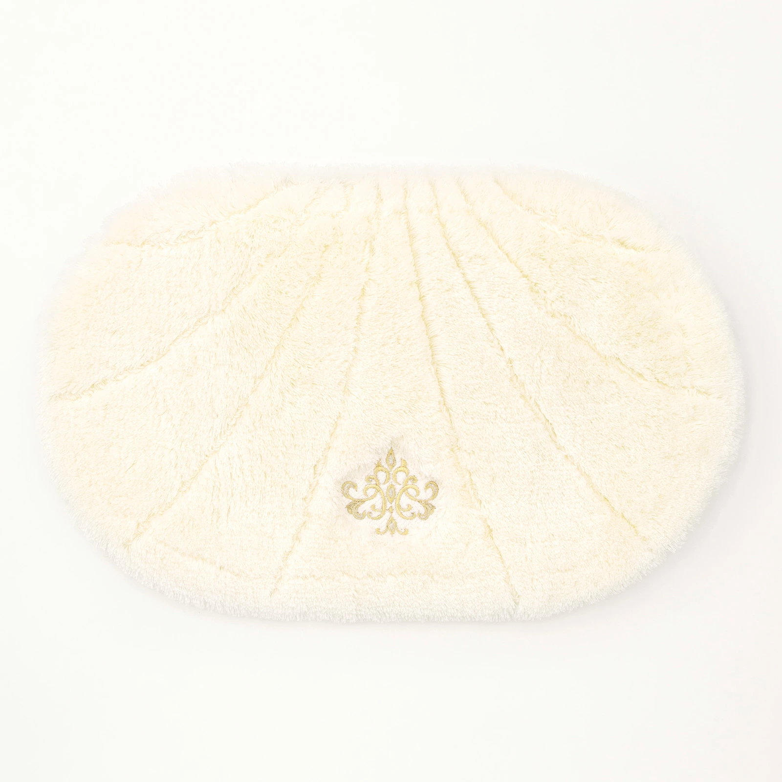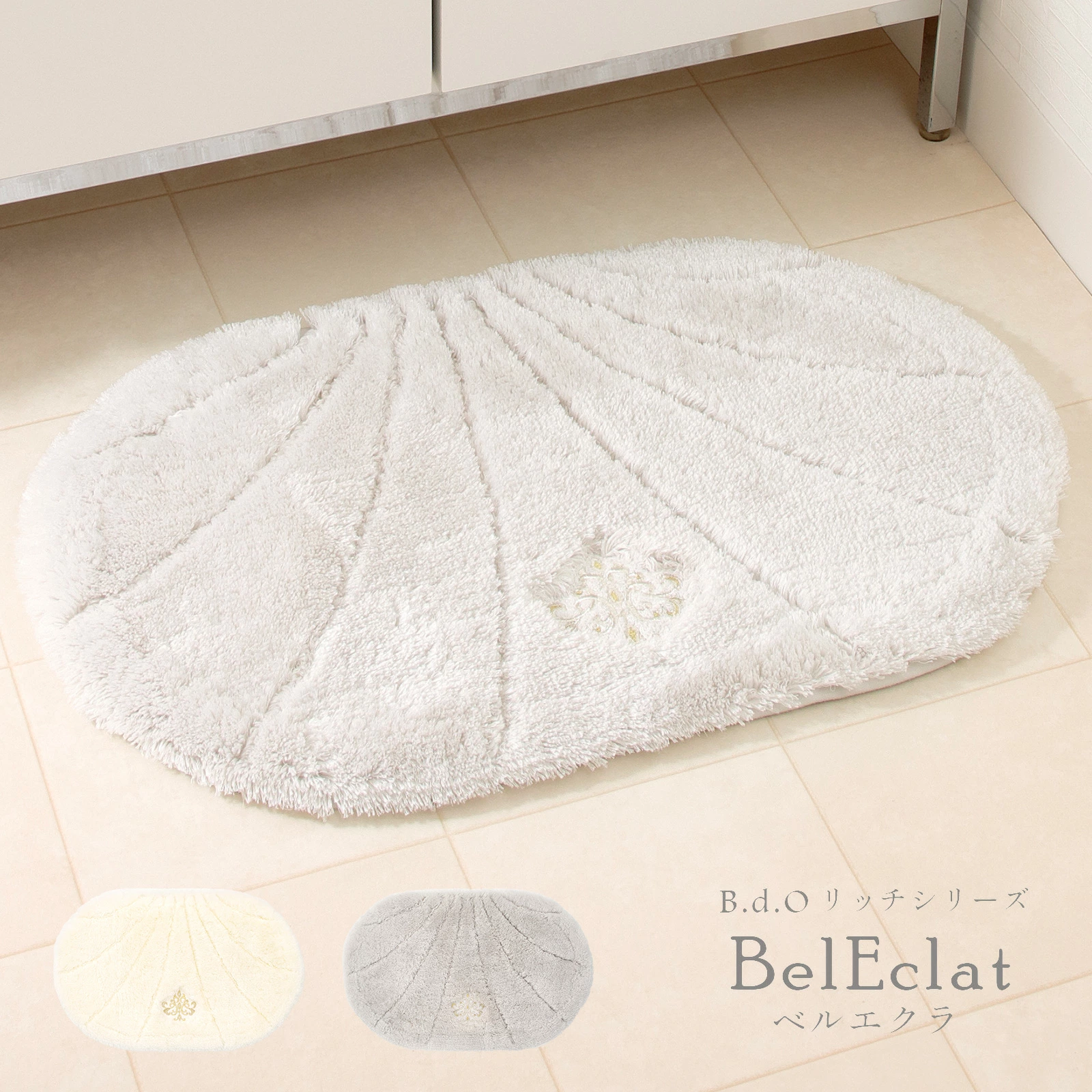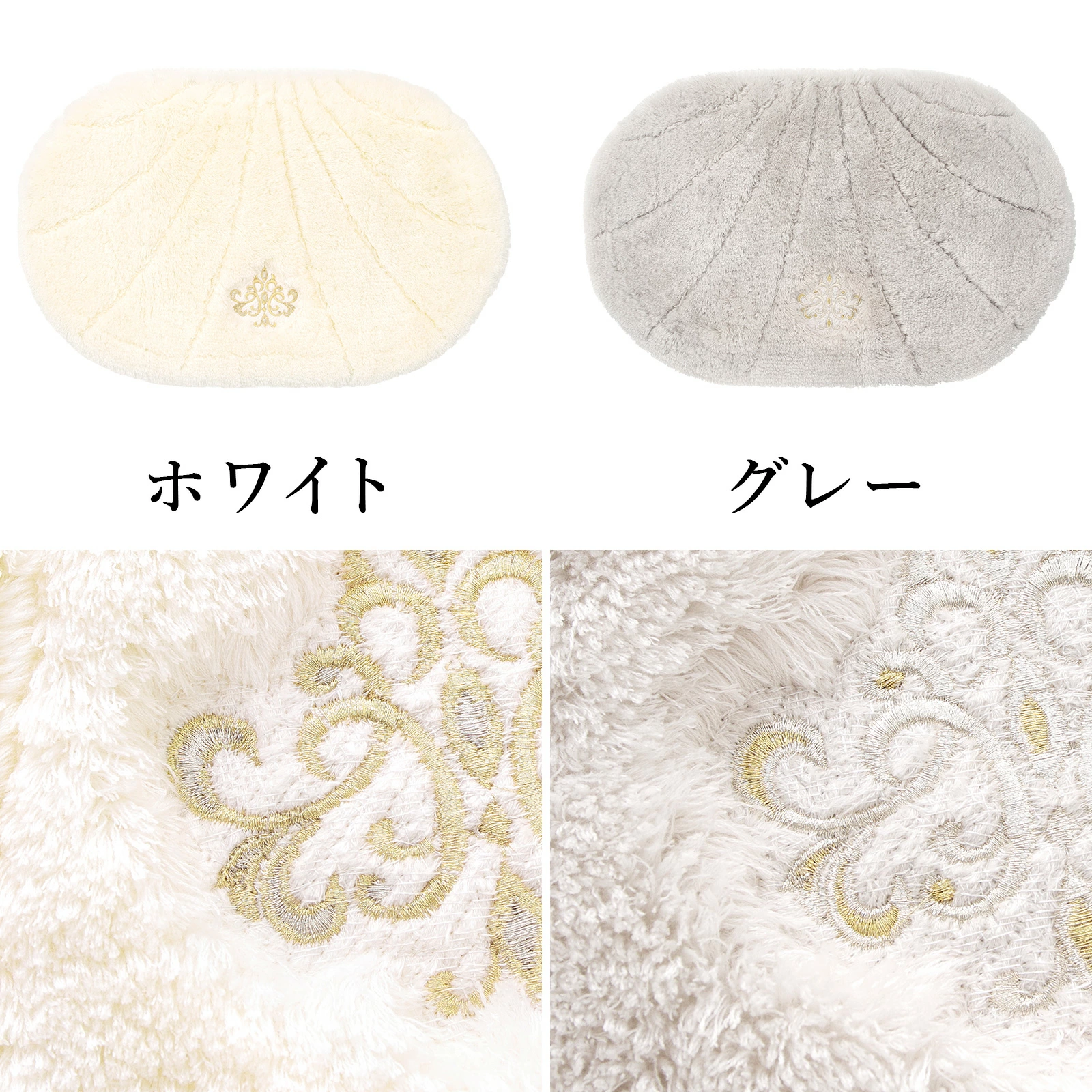 シャンデリアモチーフの繊細で贅沢な刺しゅうデザインの洗面マット。