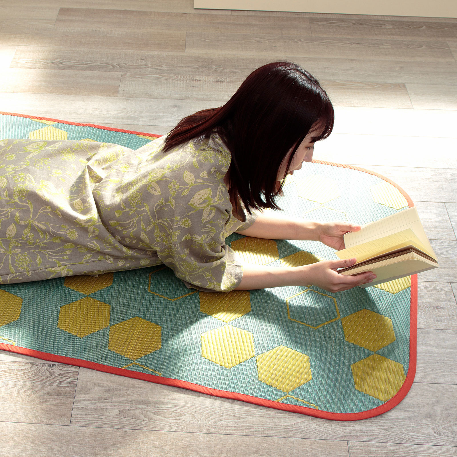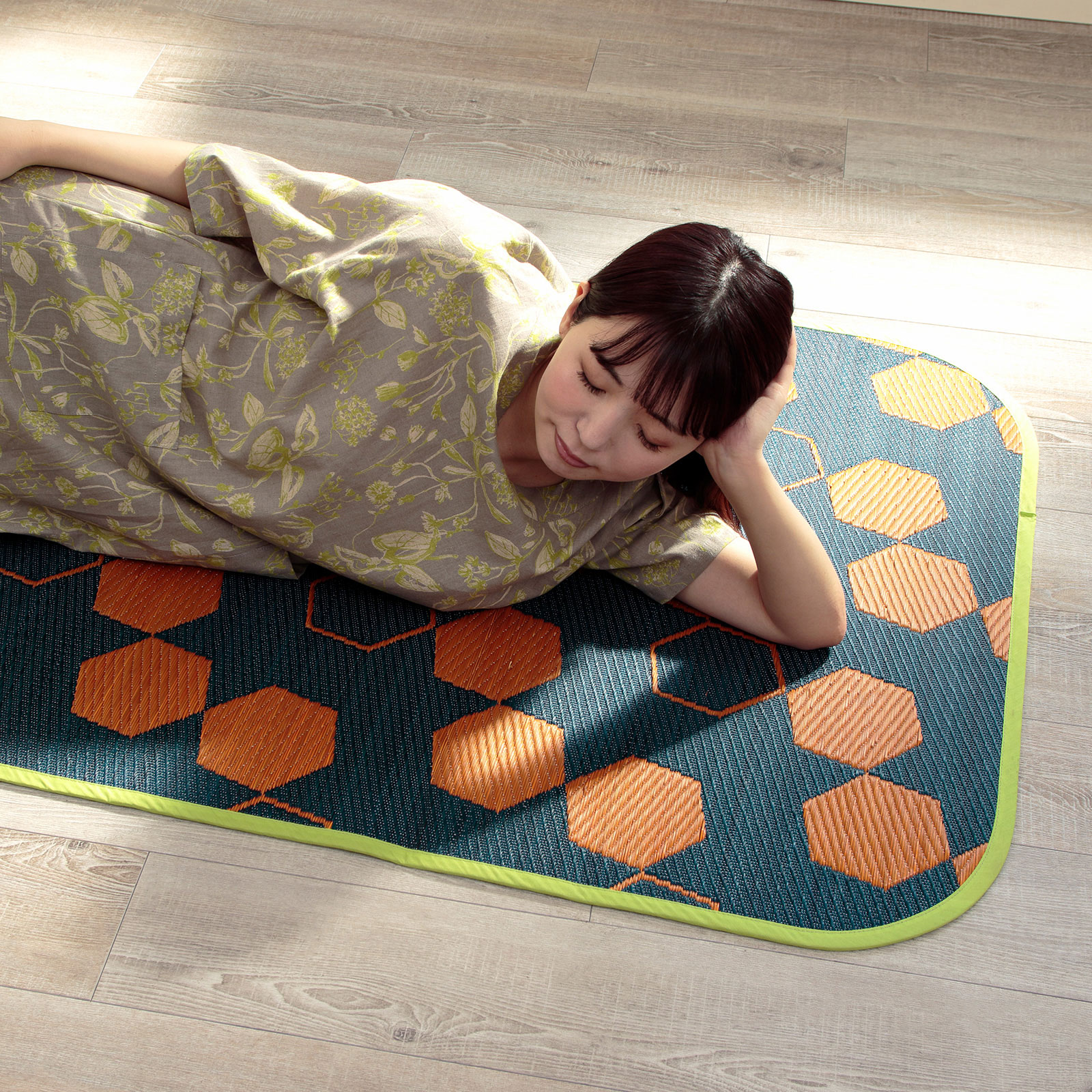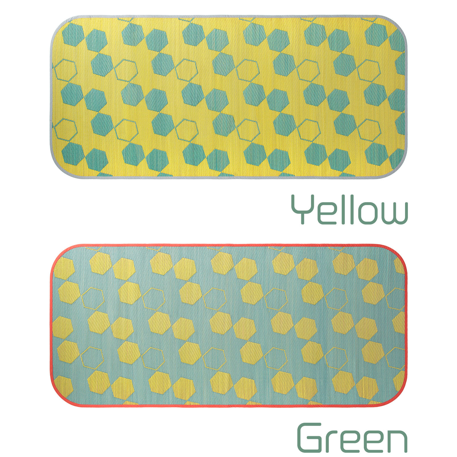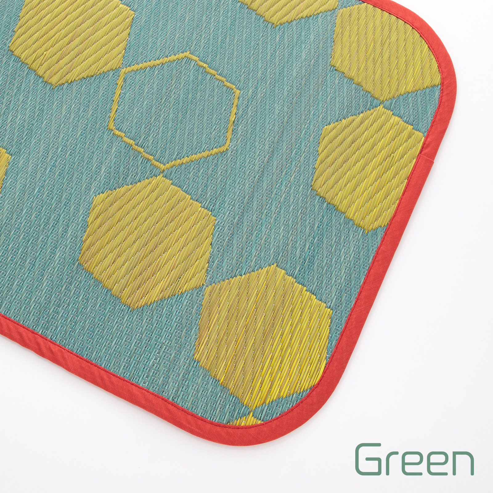 モダンでポップなハニカム柄をあしらった、い草ならではの機能性と心地よさを感じるインテリアマット。お部屋をぱっと明るくするイエロー配色と、落ち着いた印象のネイビー配色のカラーバリエーション。そして、職人の手仕事による美しい織り。