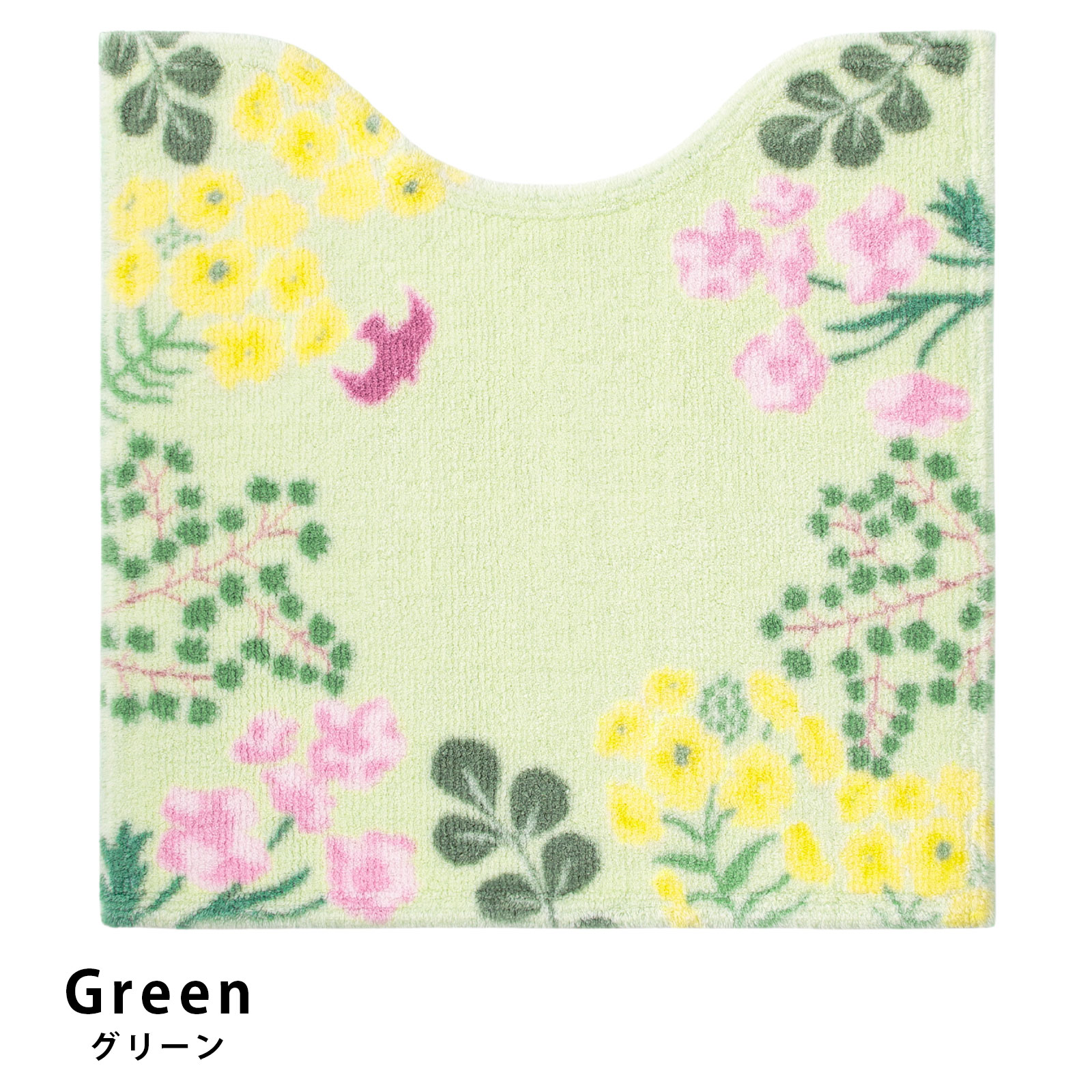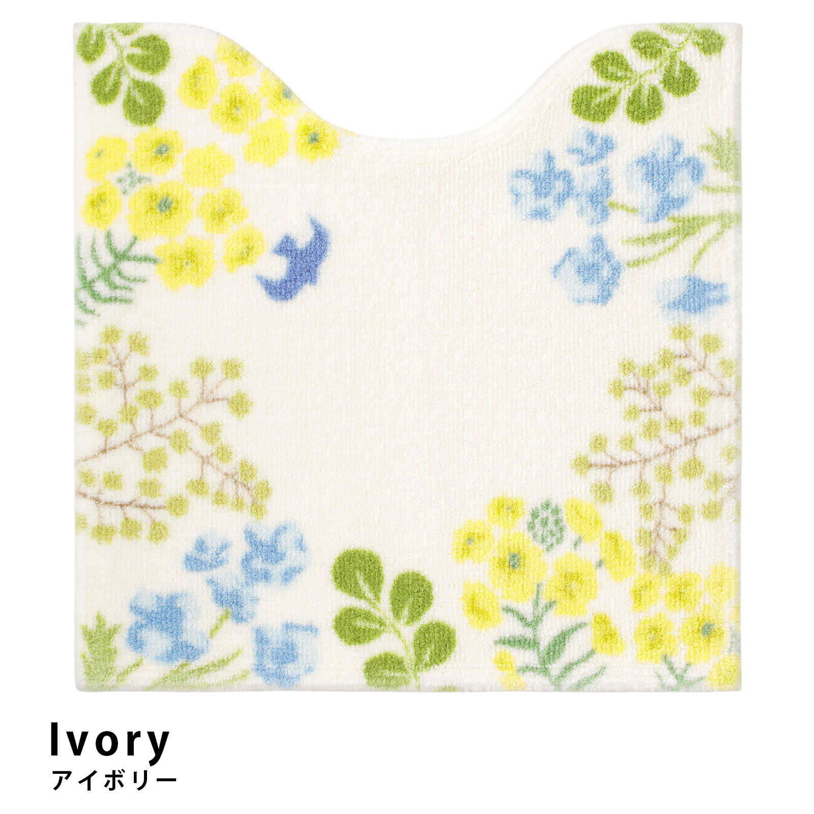 春の訪れを感じる「フラワーブリーズ トイレマット」は、花と鳥を描いた美しいデザインで、お手洗い空間に明るさを与えます。